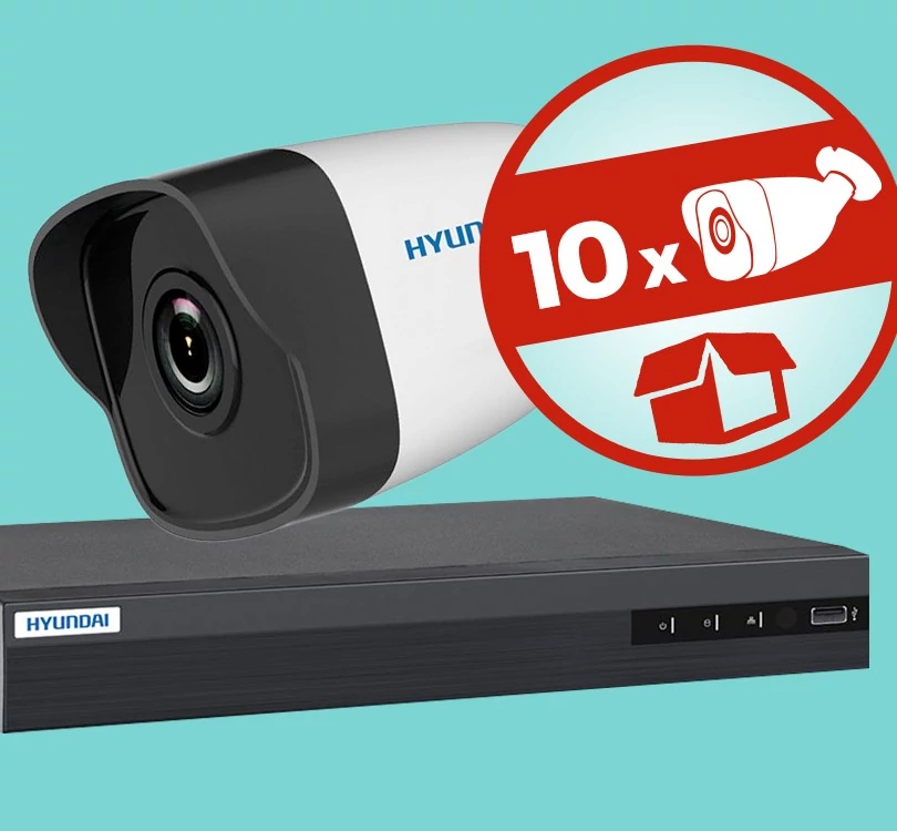 10 kamerás HYUNDAI komplett AHD megfigyelő szett, éjjel látó, okostelefonos elérés, 2MP FULL HD 1080p felbontás, H.265+, Plug&Play így akár otthon házilag is egyszerűen összeszerelhető, intelligens visszajátszás, mozgásérzékelés, Anti-Hack funkció, német Cloud szerver.