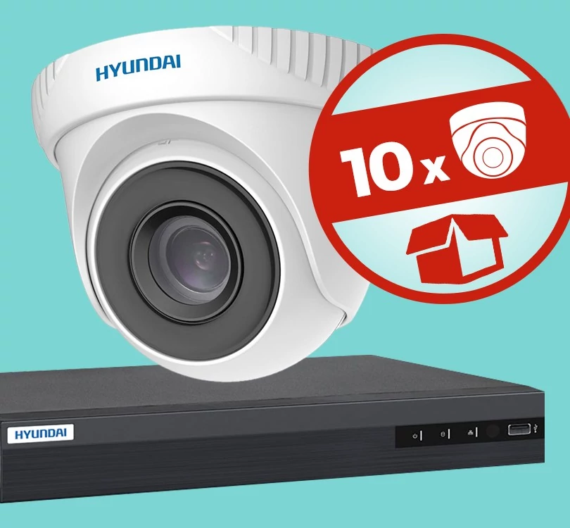 10 kamerás HYUNDAI komplett AHD megfigyelő szett, éjjel látó, okostelefonos elérés, 2MP FULL HD 1080p felbontás, H.265+, Plug&Play így akár otthon házilag is egyszerűen összeszerelhető, intelligens visszajátszás, mozgásérzékelés, Anti-Hack funkció, német Cloud szerver.