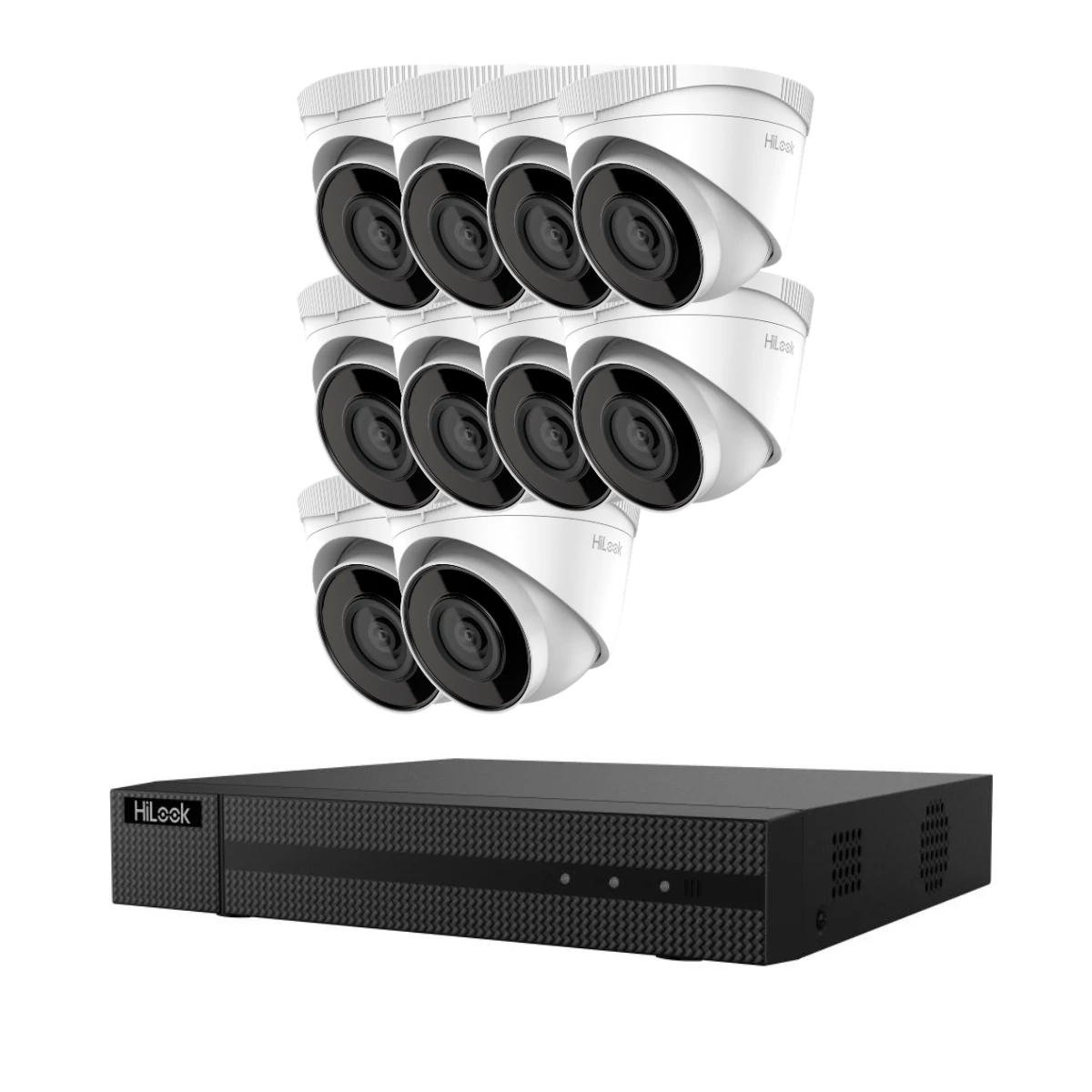 10 kamerás HiLook komplett IP POE megfigyelő szett, éjjel látó, okostelefonos elérés, 4MP 2K felbontás, H.265+, Plug&Play így akár otthon házilag is egyszerűen összeszerelhető, intelligens visszajátszás, mozgásérzékelés