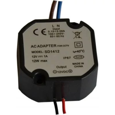 Tápegység, ICP-A1201OD, 1.000mA, kültéri (SD1412). 1.000mA, 12V DC, kültéri IP67 védett, kapcsolóüzemű, stabilizált tápegység. Hagyományos villanyszerelési szerelvénydobozba is elfér. Túlfeszültség, túláram, rövidzár és túlmelegedés elleni védelem. Műanyag, nem éghető ház.